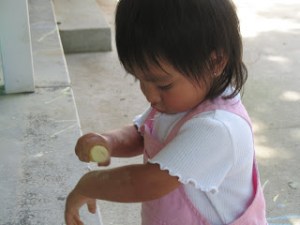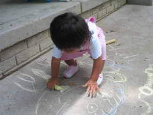 Guess art time is over. Wait a minute, what’s this tiny creature crawling across the driveway? Mommy says it’s an ant, but he’s really hard to catch.