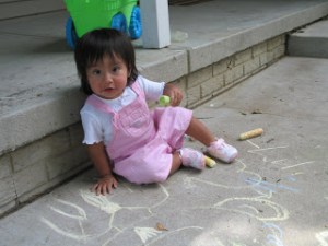 3. I love the idea of a cookbook! How wonderful! If you need any recipies from Guatemala, we have a few favorites that I would be happy to share.I love hearing your next steps for adoption #2. Lili has got to have the cutest look of concentration EVER – look how intent she is on getting that chalk to make that concrete look pretty!