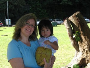 The interesting thing about the island of Kauai is that there is only one main road on the island, but it does not go all the way around the island. We went about as far north as we could and stopped at a beach. There was a man selling fresh coconut from the back of his pick up truck, so Dave bought one for us to try. He cut the top of the coconut exposing a hole in the top and placed a straw in the hole so we could try coconut water. Here is Lili and I with our coconut. I have to admit, neither of us were impressed.