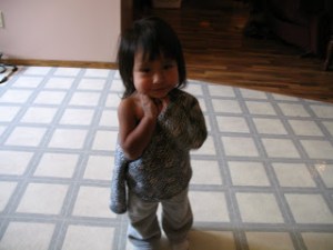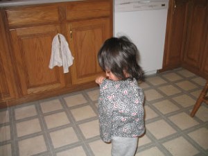 I wasn’t sure what I was going to post for FFF, but Lili answered my question a little earlier today while I was preparing lunch. She came in from the family room where she had apparently been busy trying to undress herself.