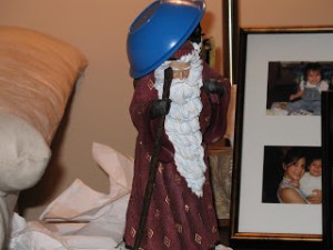 Making sure she has everything she needs.Lili found another use for one of the bowls from her kitchen set. A hat for mommy’s Pipka santa.