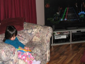 I’ll close my post with some recent pictures of Lili playing Guitar Hero.