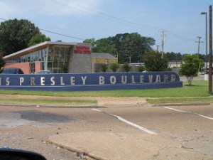 The van was moving and he didn’t get the camera centered, but the sign says “Elvis Presley Boulevard.” At least it was a start π