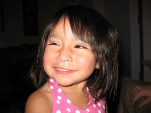 Lili wanted me to take her picture so she could see it. This is a mixture of smile and her saying “see it.”