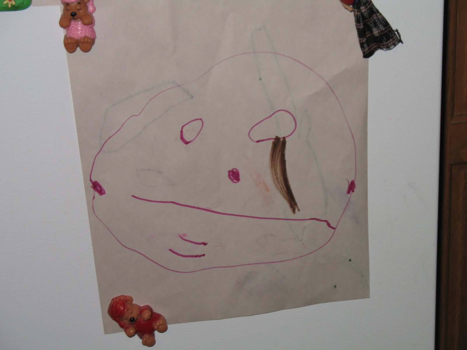I’m not sure why this person is crying, but I must say I am highly impressed that at 2 1/2 she was able to draw a face this well. Granted, the last time I had a 2 1/2 year old was 19 years ago so I don’t remember exactly how well the boys were drawing at this age, but again, I’m impressed.