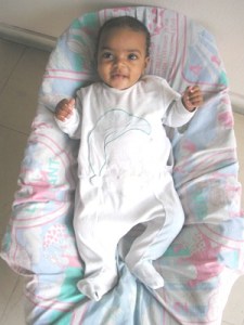 4. What a precious little girl! Congratulations! She looks so happy her Mama is coming to get her soon 🙂 I would bring 0-3 month and 3-6 month clothes. That's what I did for Nyah and she wore a little of both.