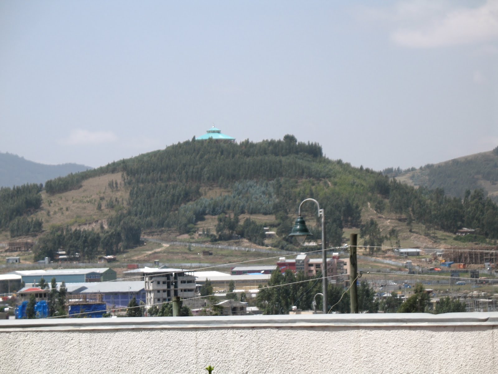 Addis Ababa has a population of about 7 million people and is not a quiet city by any means. However, the night time noises are not people but dogs, roosters and prayers that are spoken at various times during the early morning hours and broadcast across the city via speakers. Between all the unfamiliar sounds, knowing we were meeting Naomi and jet lag, we didn’t sleep well. I did, however, get some sleep and awoke to something that sounded a lot like a donkey braying. As a got up and looked outside this is what I saw.