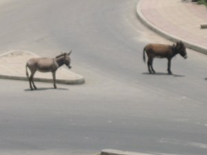 Since we arrived very late at night, we had no idea what the scene from our room would look like and we were very pleasantly surprised to have such a beautiful view. And as you can see, I wasn’t dreaming about hearing a donkey. These two were standing in the intersection and a short time later were retrieved by their owner.