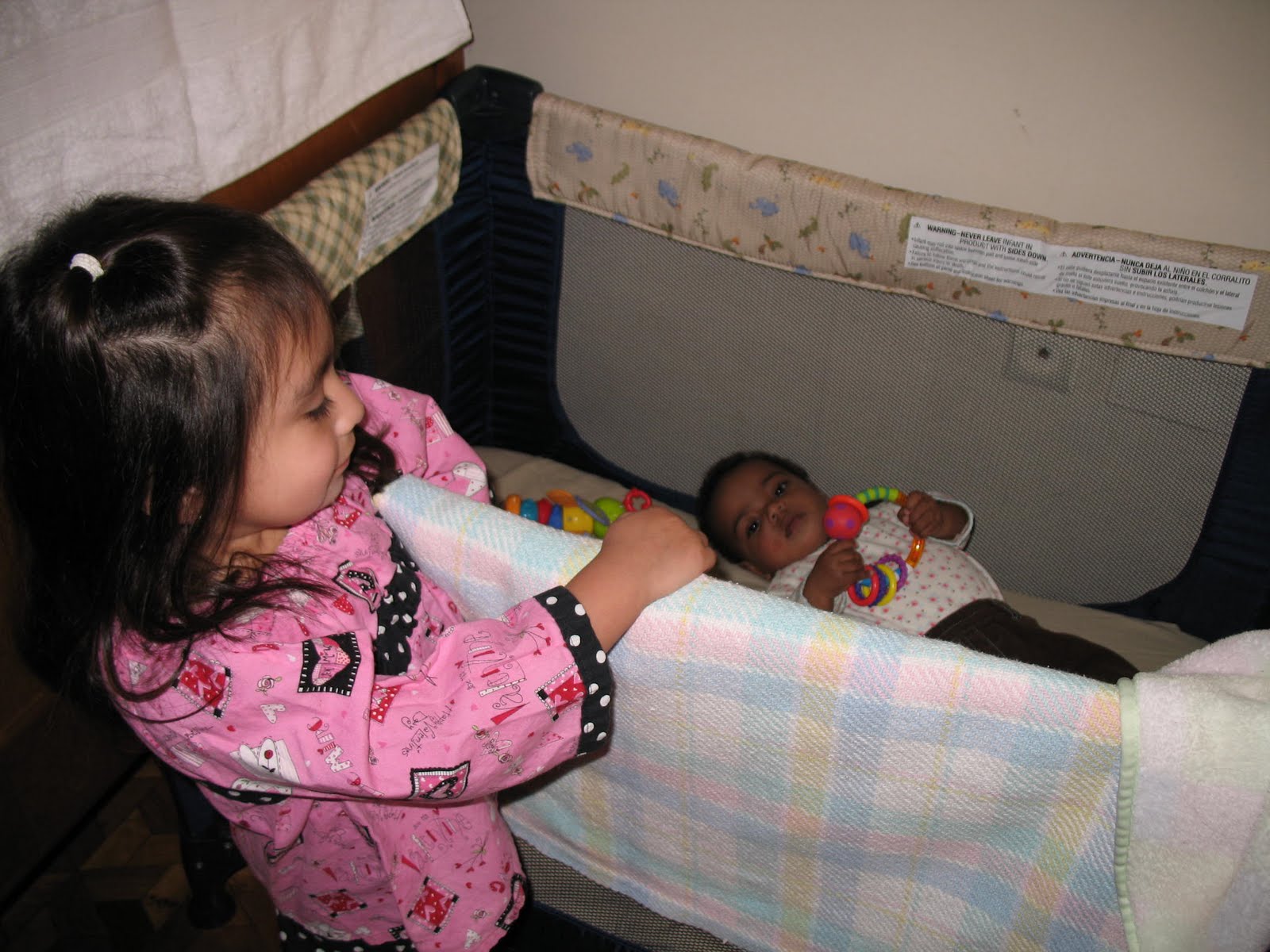 Checking on her baby sister.