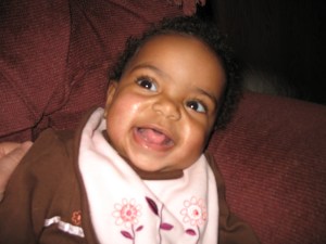 Now that we’ve been home for almost a week, we’re starting to settle in and figure things out. Naomi isn’t yet sleeping through the night, but only waking a couple times for a bottle and then going back to sleep. She is a tad behind developmentally, which isn’t abnormal for a baby who lived 7 months of her life in an orphanage. However, after having her for two weeks, we’ve already seen improvements in her development.