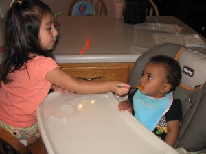 We did our best to prepare Lili for the arrival of her baby sister but truly had no idea how easy or difficult it was going to be once Naomi became reality in our lives. While there have been some challenges, primarily jealousy in the form of wanting Naomi to move from mommy’s lap to daddy’s lap or taking toys away from her, it hasn’t been as bad as I had envisioned. Lili absolutely loves her little sister. When I’m rocking Naomi to sleep, Lili will come over and ever so gently give her kisses. She regularly tells us “Mayo-me is so cute.” She wants to help feed her and now wants to take baths with her. In the mornings or after nap time she’ll run up to Naomi and say, “Hi little girl.” She gives her tickles and smothers her with attention.