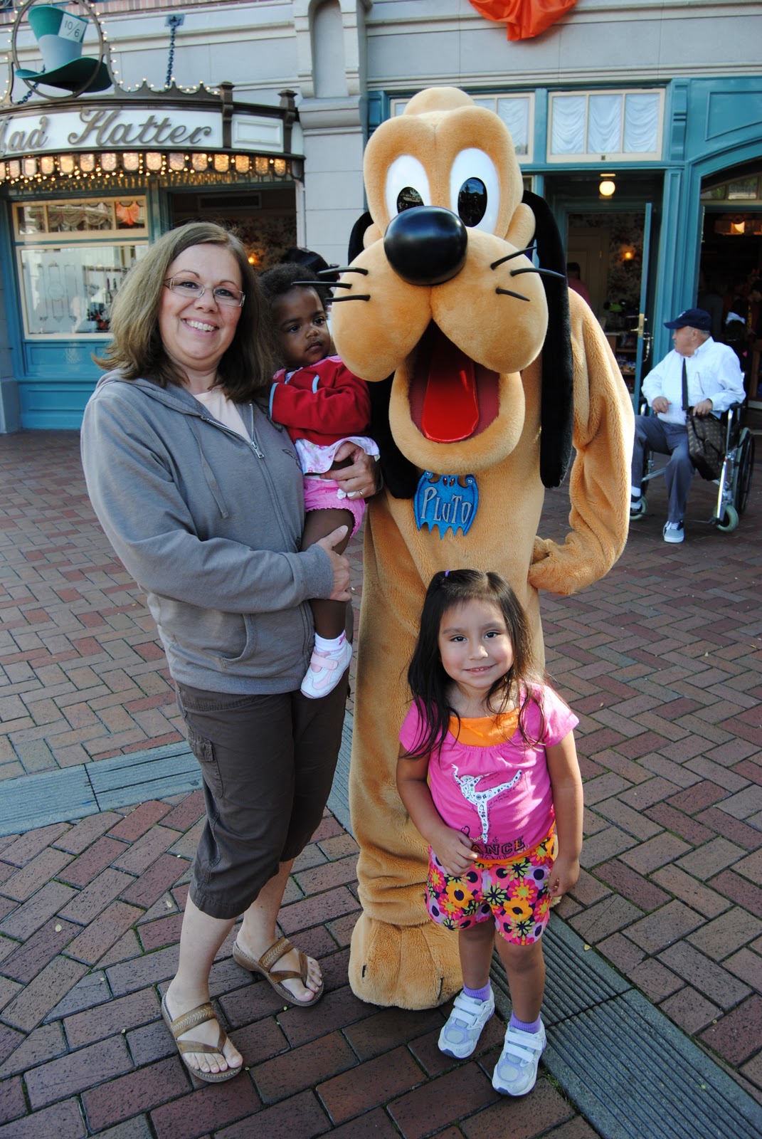 | After the picture with Mickey we ran over to get a shot with Pluto. Apparently Naomi was a bit too close for comfort. |