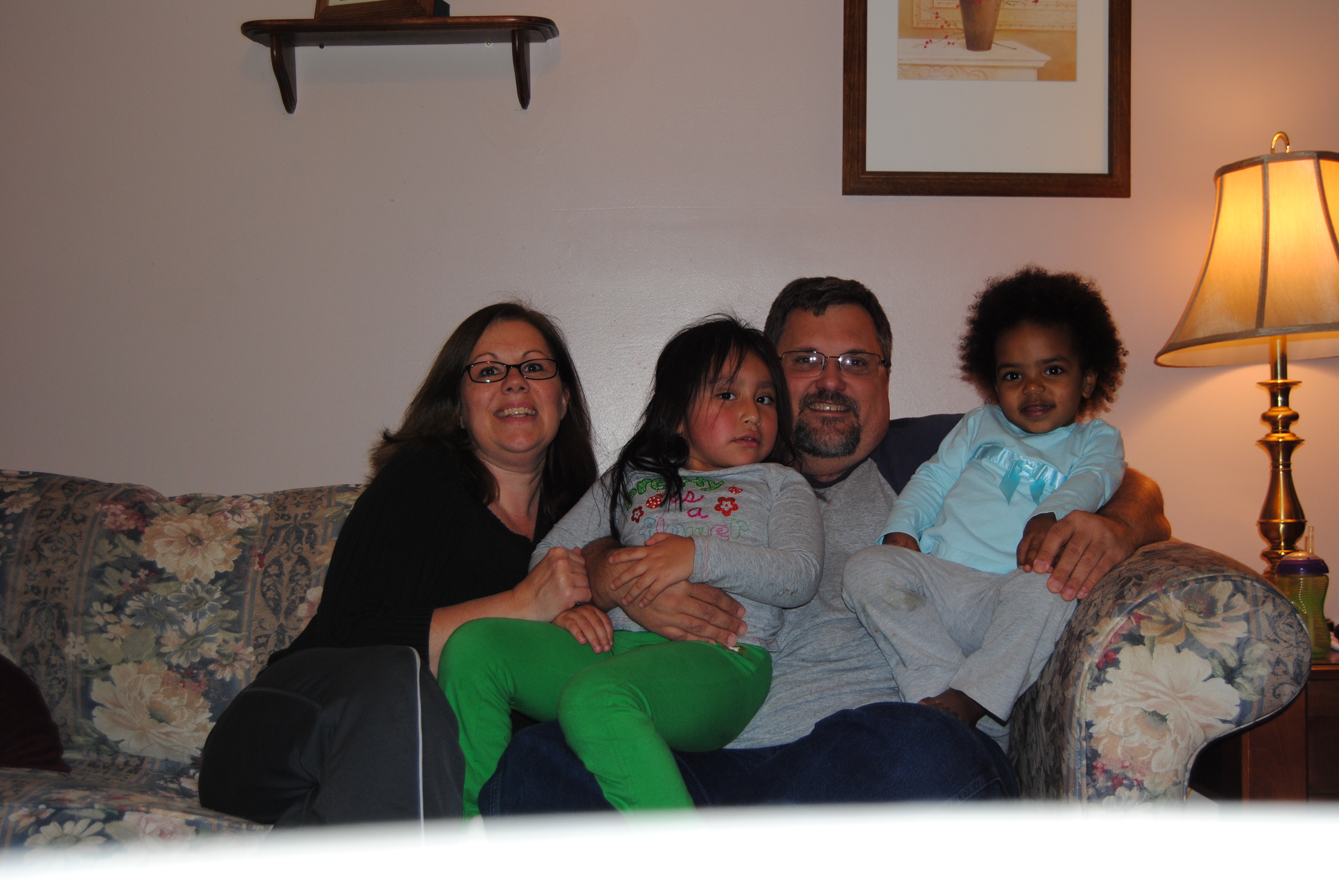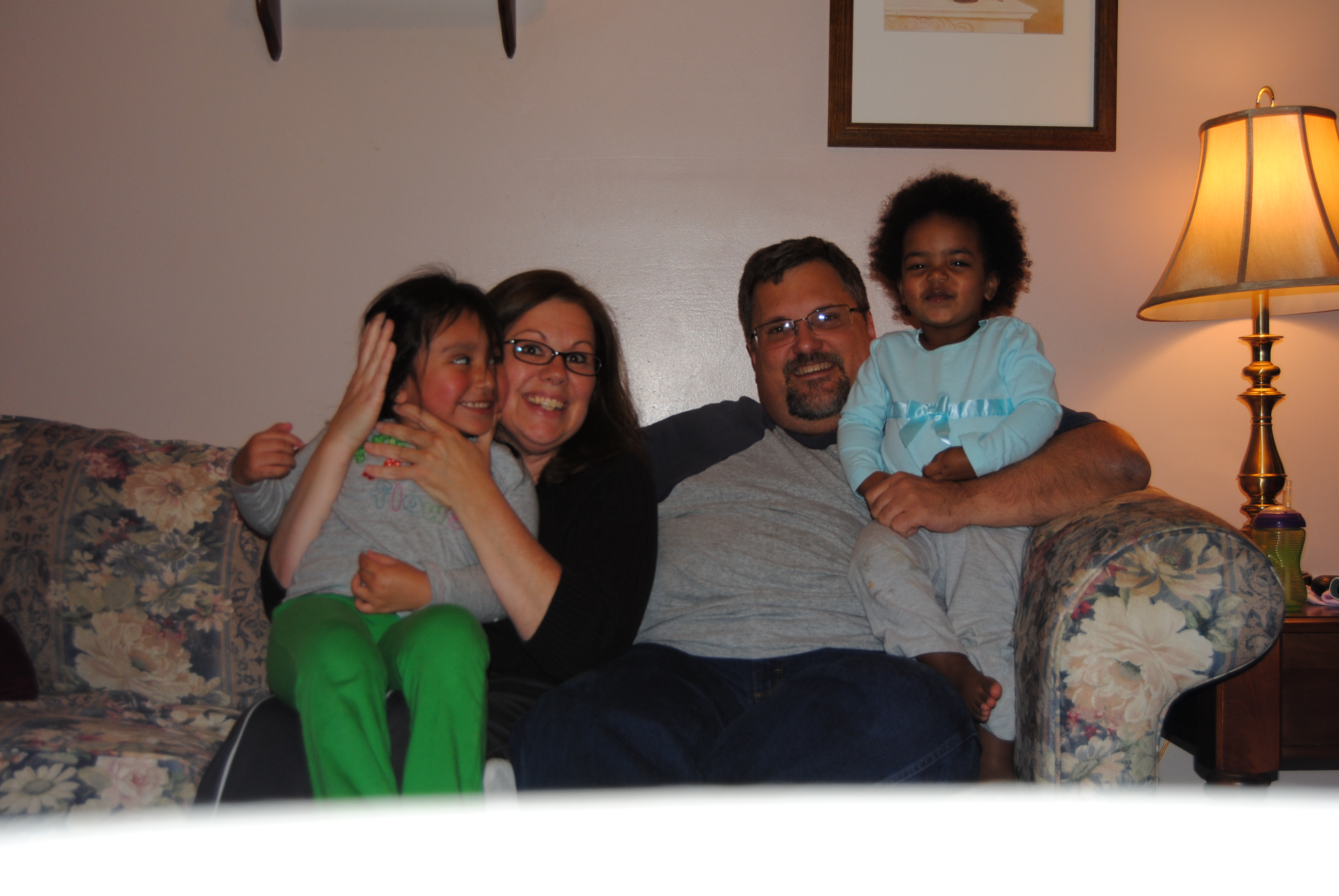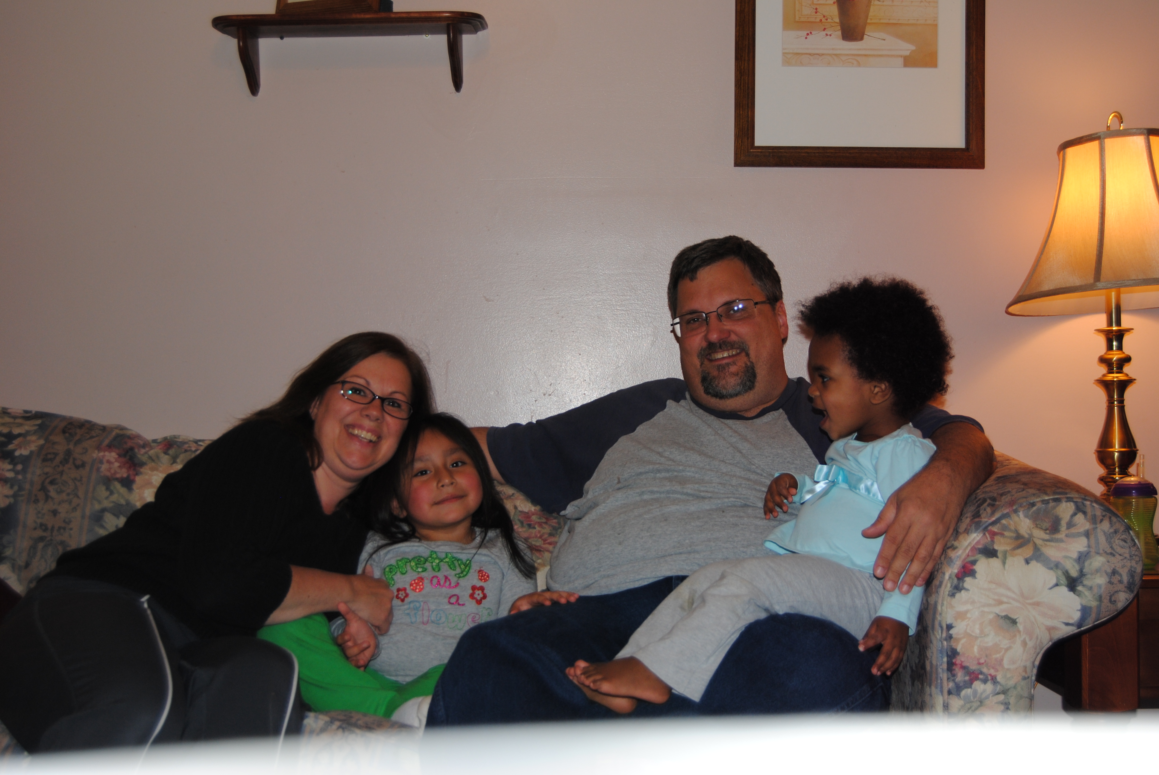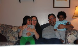 It seems that I’m typically the one behind the camera at our house which means there are not many pictures of me with the girl and it was recently discovered that there were no pictures of Dave and I with the girls. So, I got out my camera, figured out how to use the timer and we attempted to get some impromptu family shots. It isn’t easy getting an almost 2-year-old and a 4-year-old to cooperate simultaneously for a photo. Still, it was kind of fun and I thought I’d share our attempts.