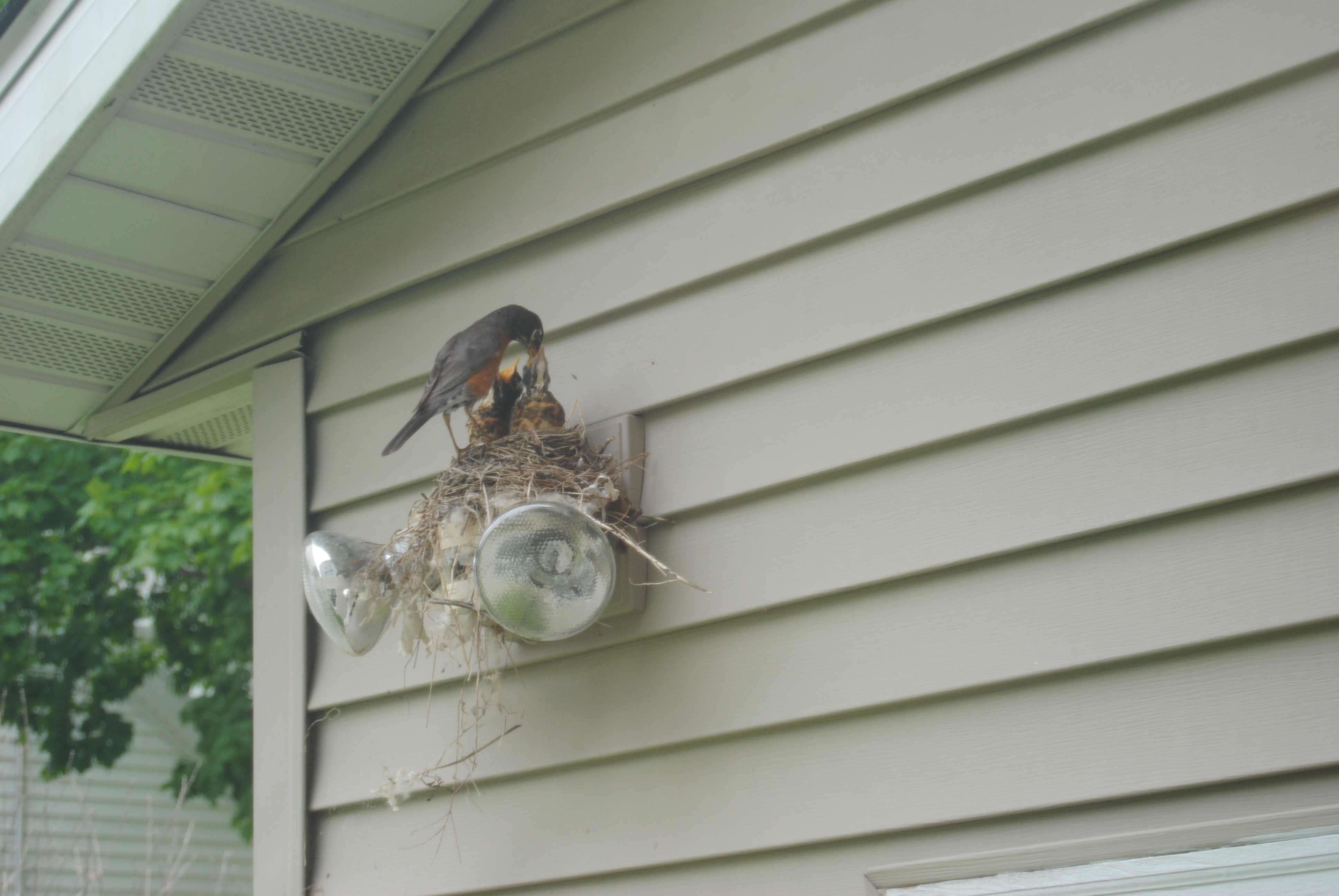 The babies have gotten so big now that there is no longer room for momma robin. However, she regularly checks in and feeds them which has been fun to watch.