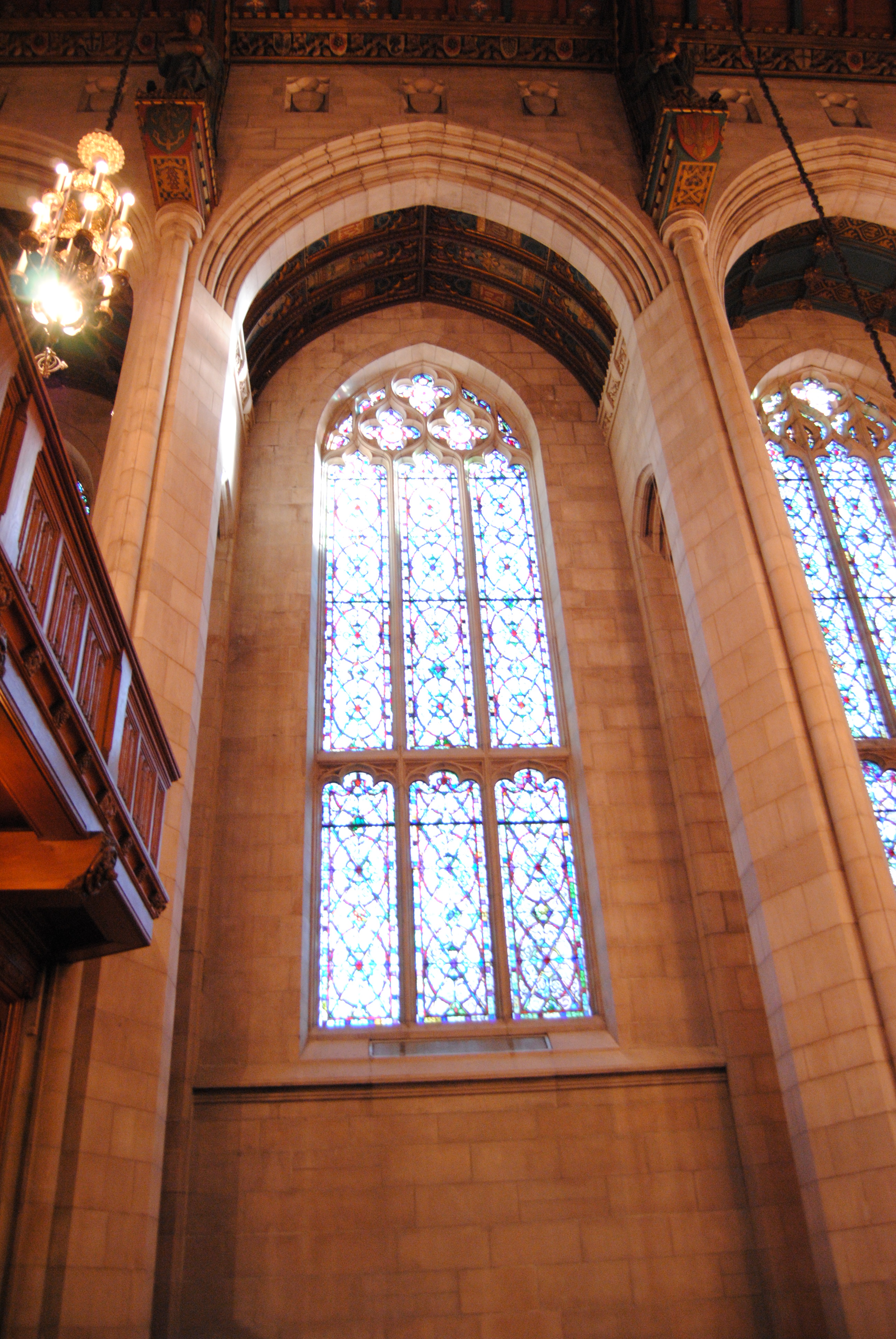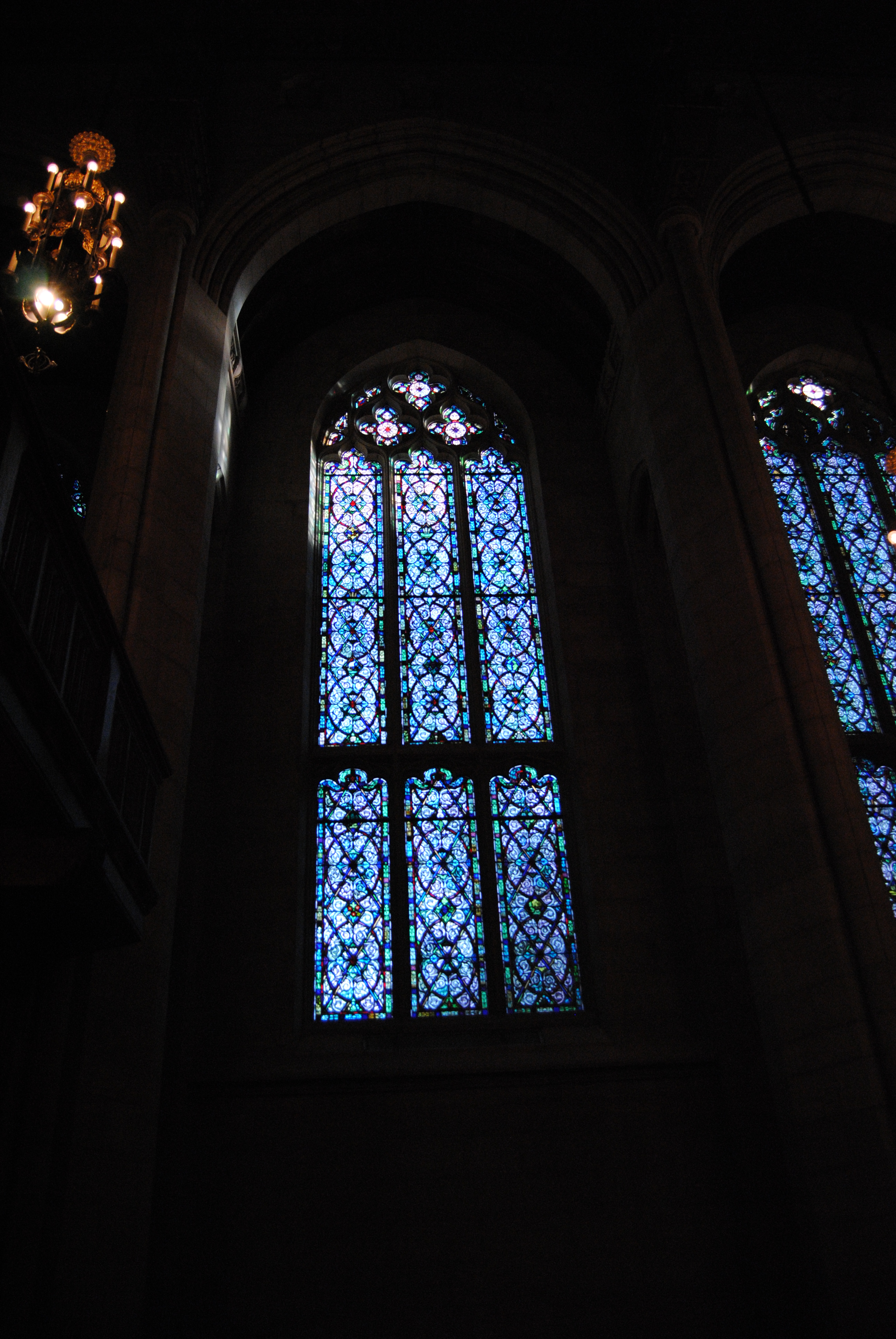 The first photo show a stained glass window in a church.