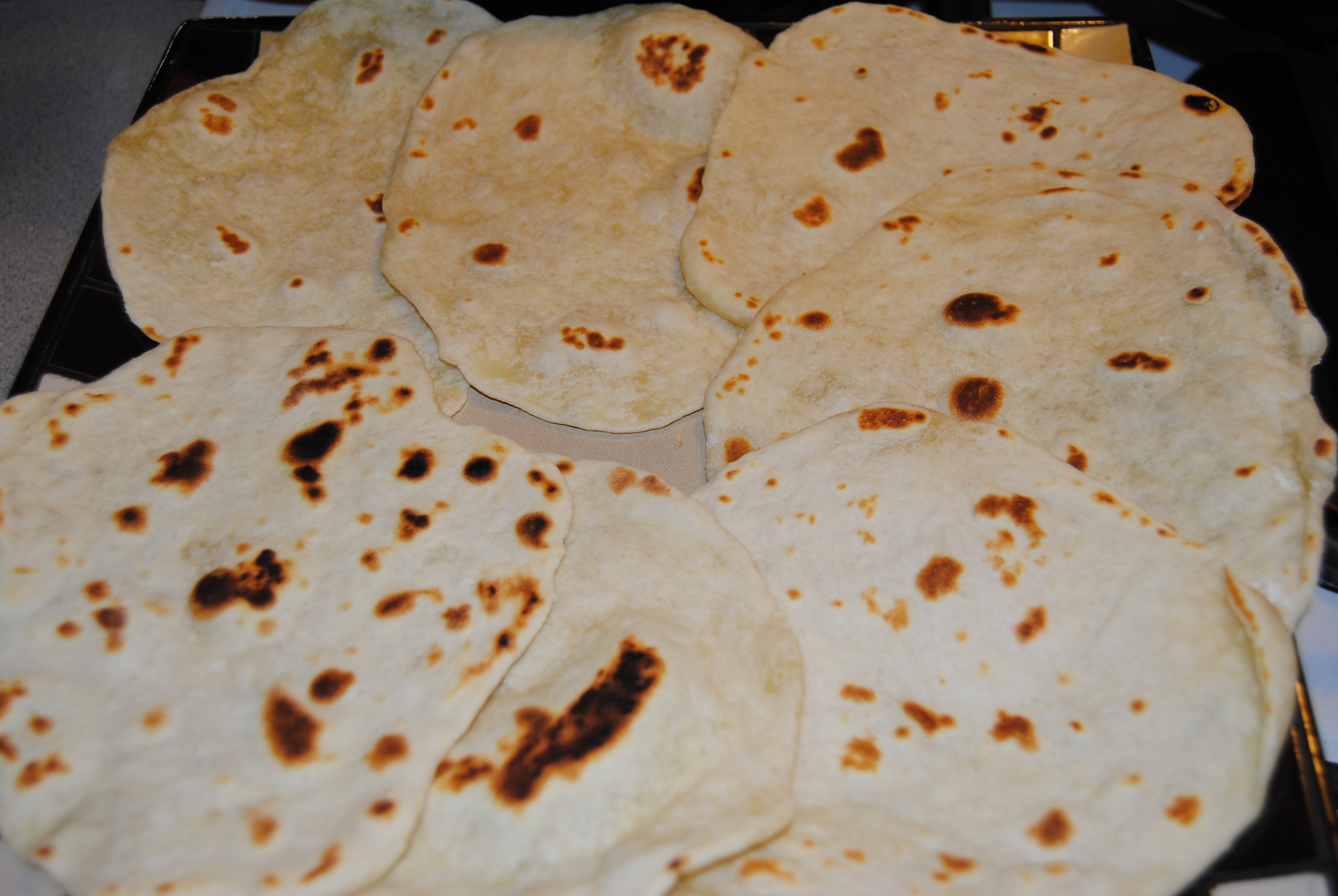 When it begins to bubble on the other side, pull it out of the pan.  Repeat with the rest of the dough and then serve warm.
