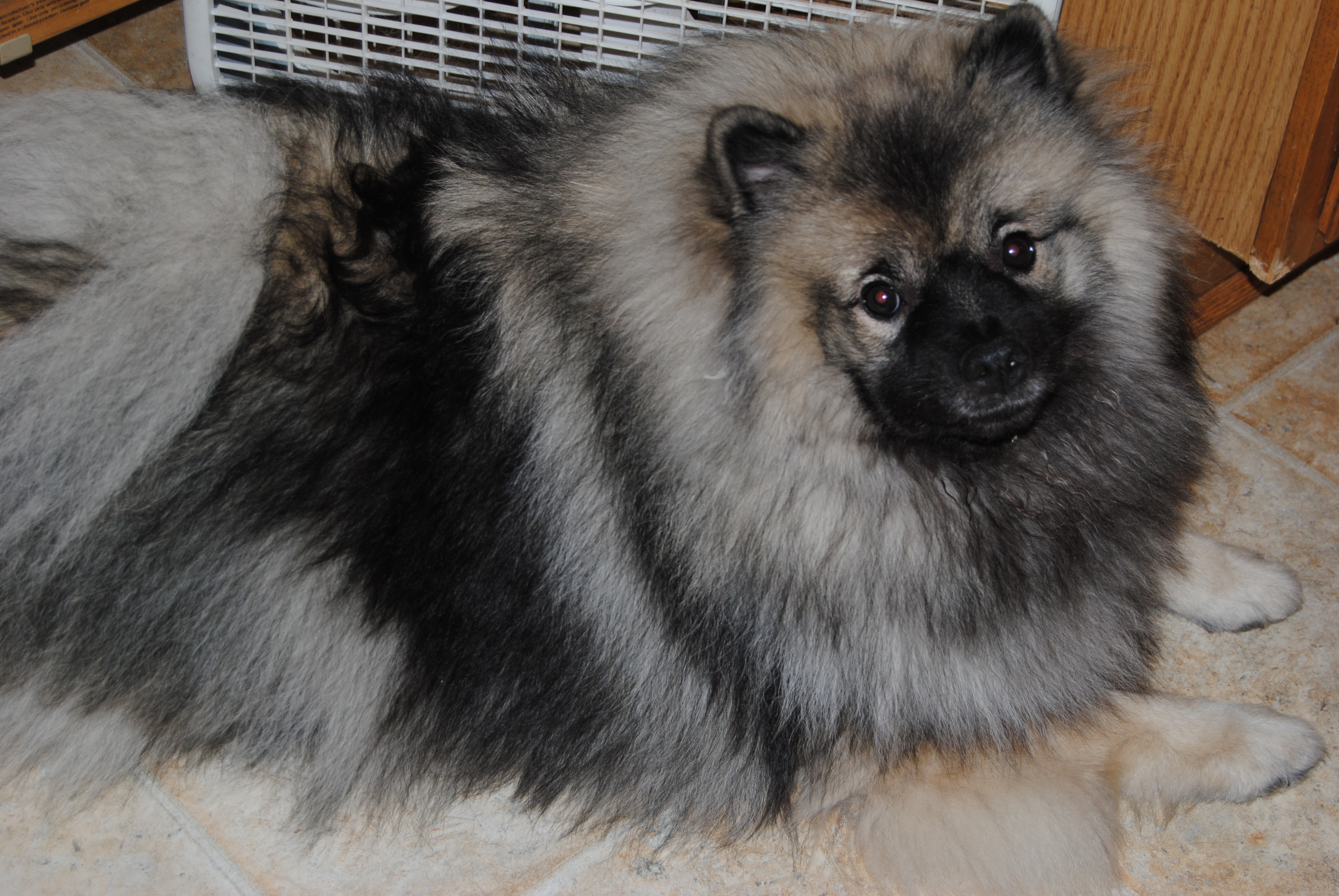 Apparently, she is feeling confident in her skills since she cut hair off Zoey, our youngest Keeshond.