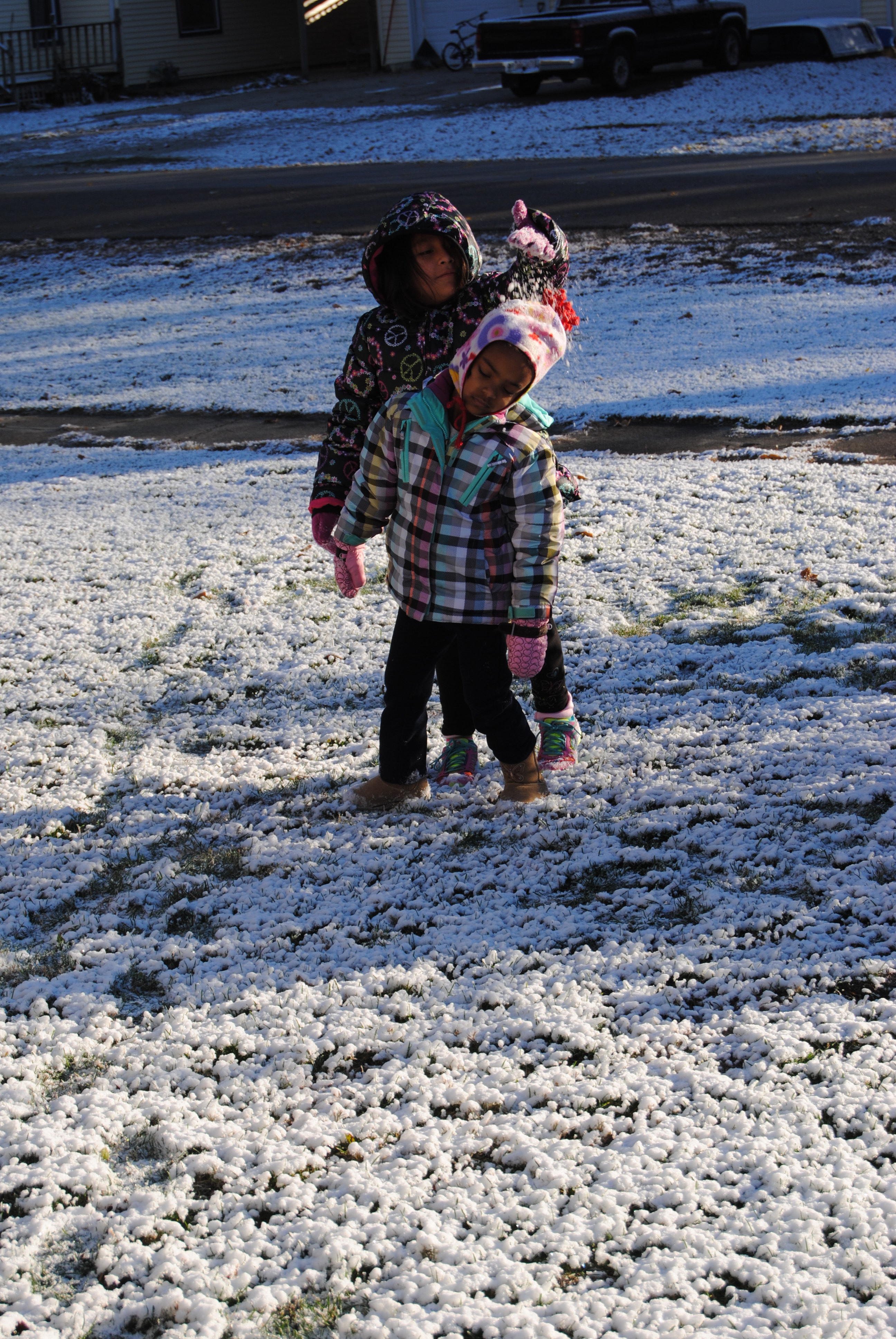 The snow began around dinnertime.  There wasn’t much accumulation expected, but the girls were still excited and couldn’t wait until morning when they could go outside and enjoy the very first snow of the season.