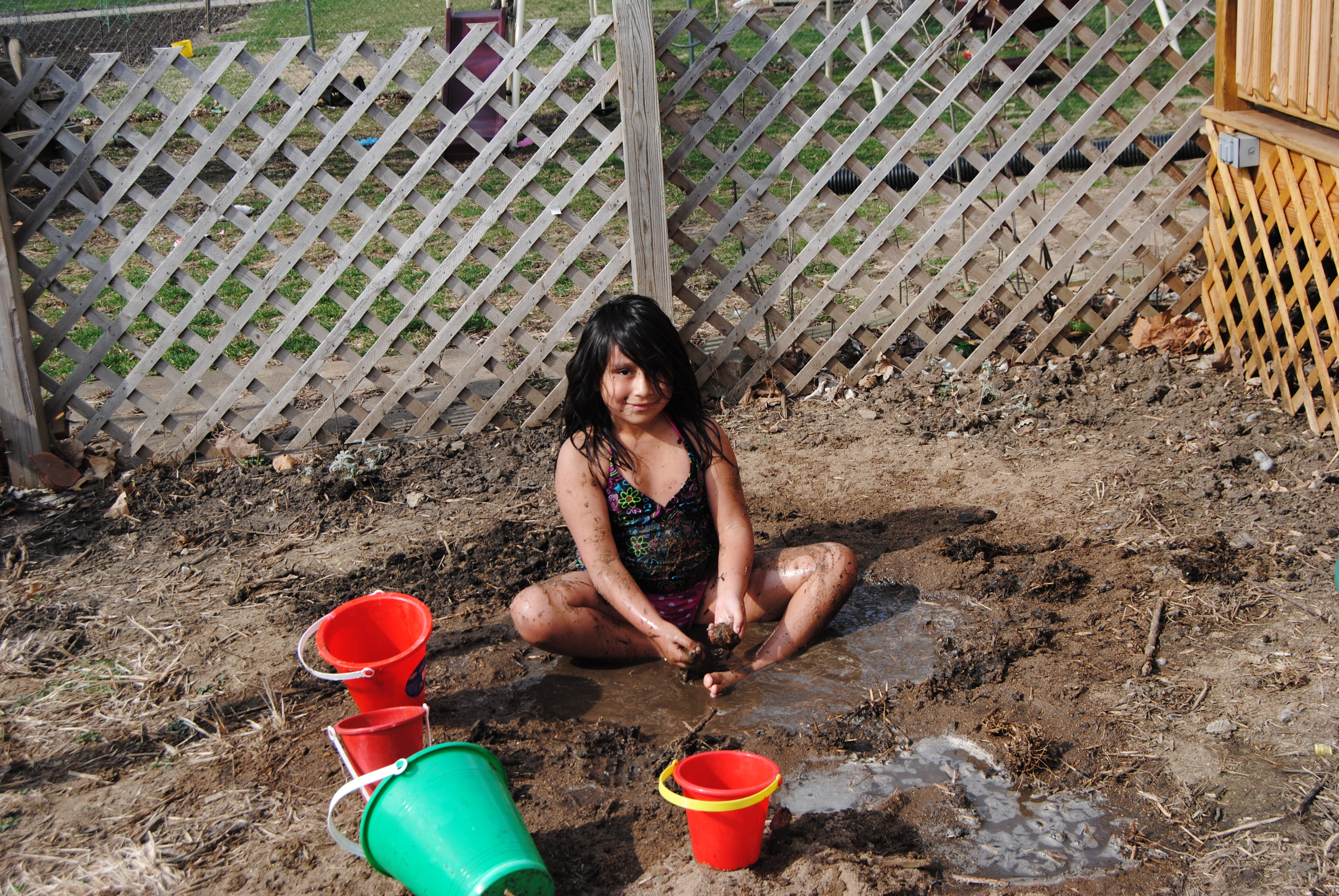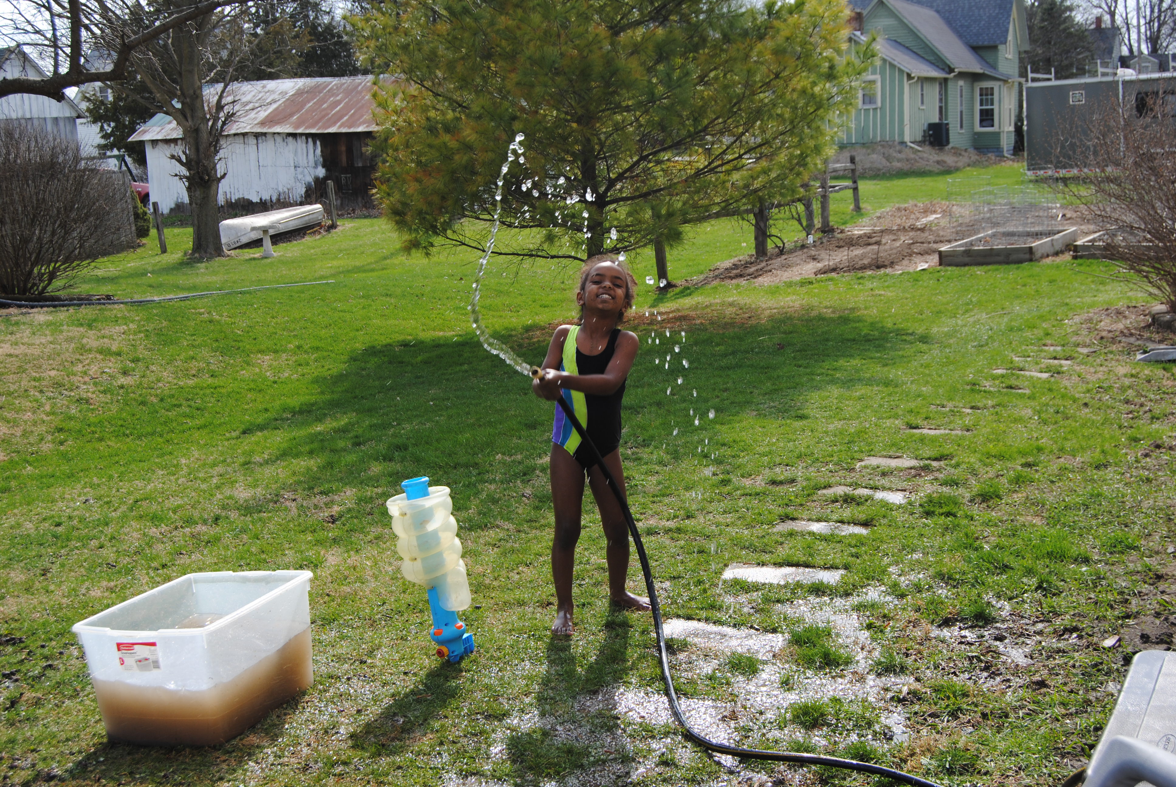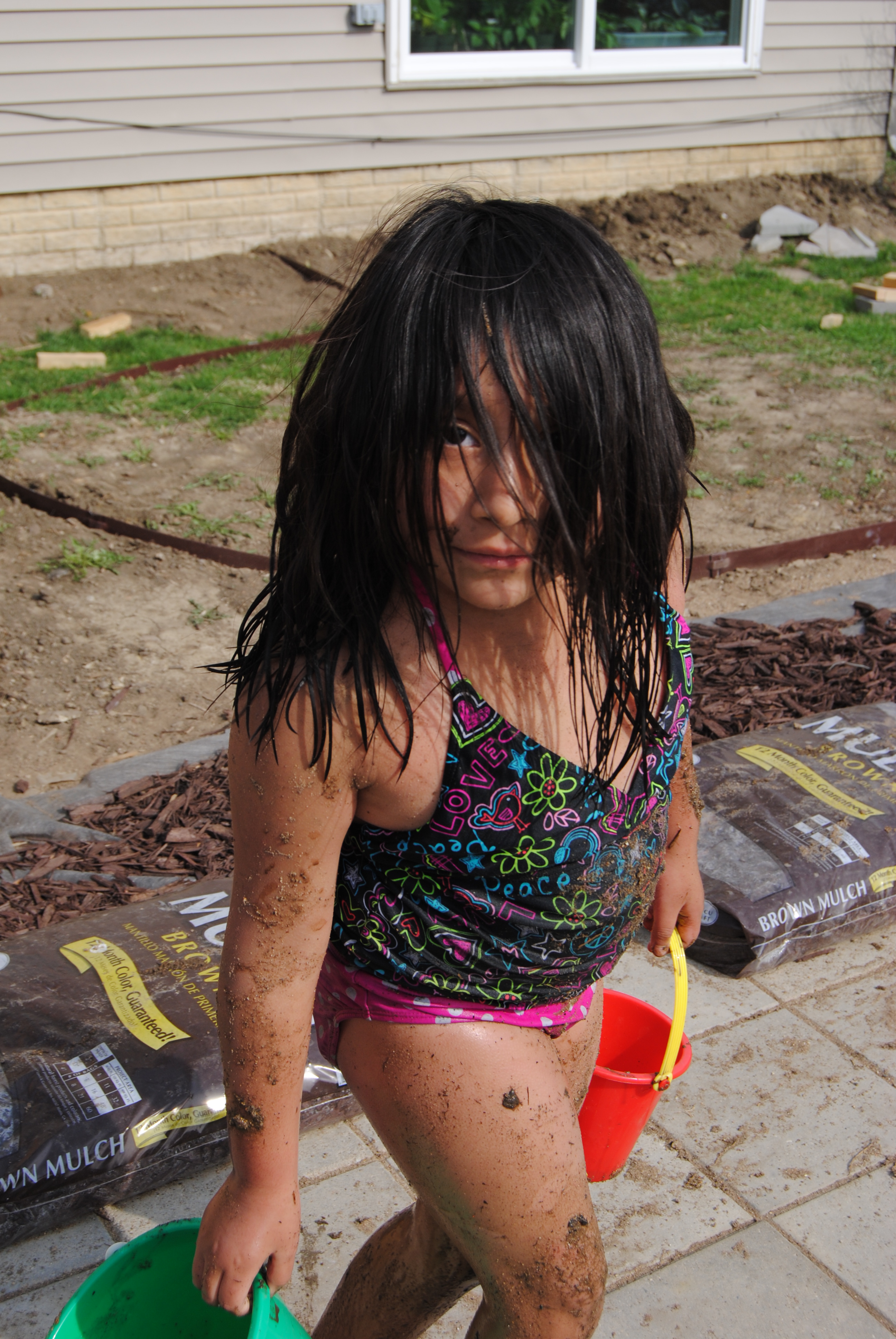 During all the landscaping, the girls took advantage of our nice warm day by entertaining themselves with the hose.