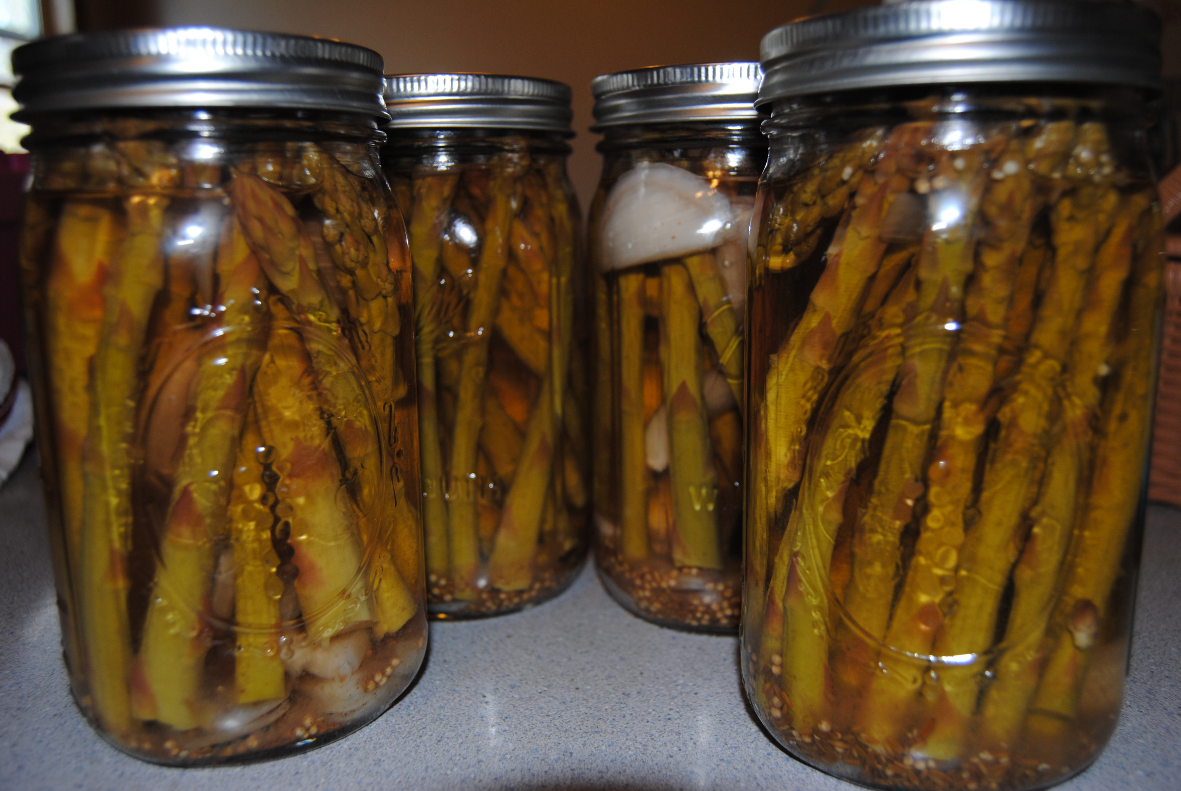 Here is the recipe I used for Pickled Asparagus http://foodpreservation.about.com/od/Pickles/r/Pickled-Asparagus-Recipe.htm. I’ll let everyone know how we liked it after we open a jar for a taste.