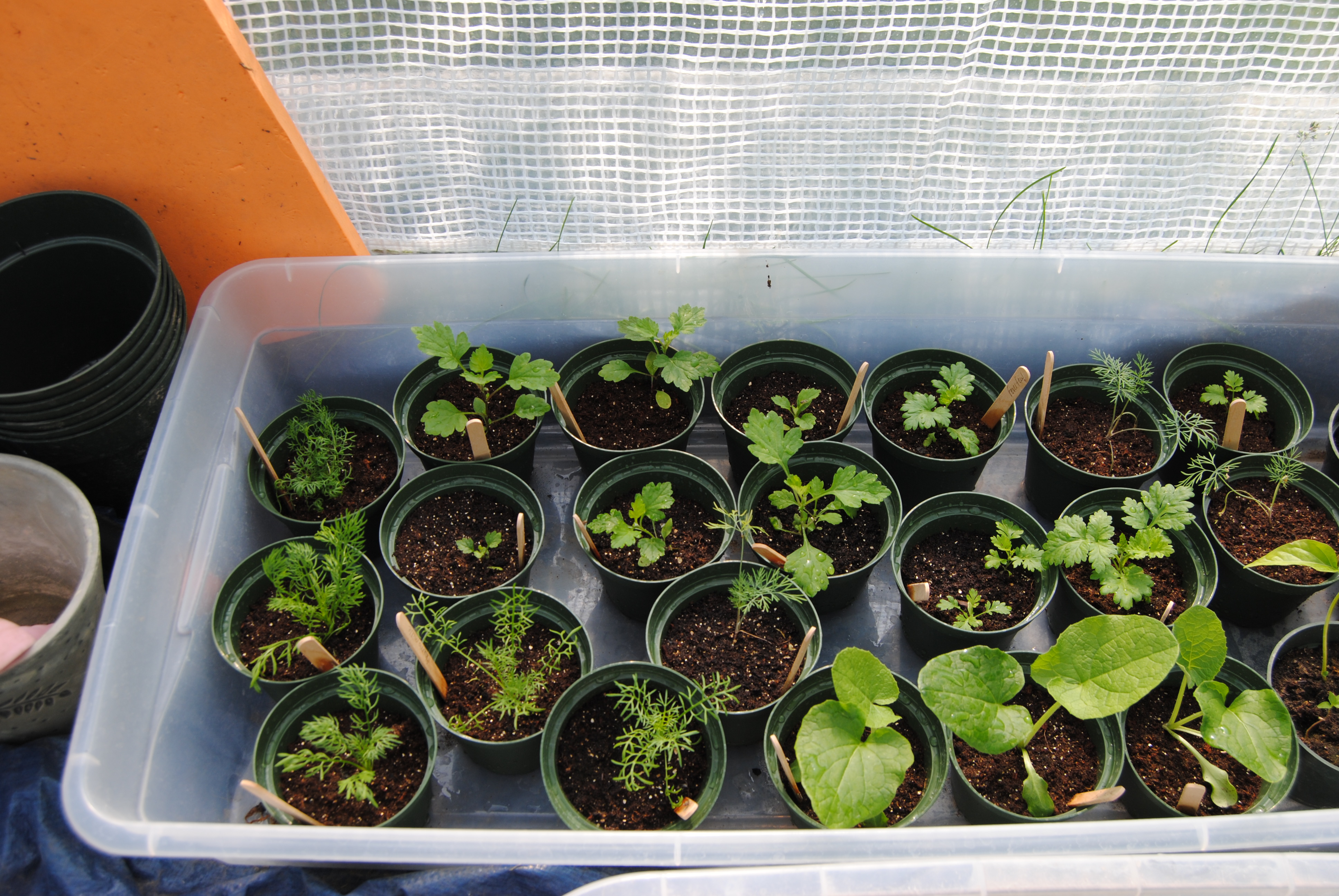 I have more that I need to transplant into bigger pots and will move them out to the green house in a few day.  In the meantime, I’m getting their future homes ready around the patio and can’t wait to see how my few herb garden grows.