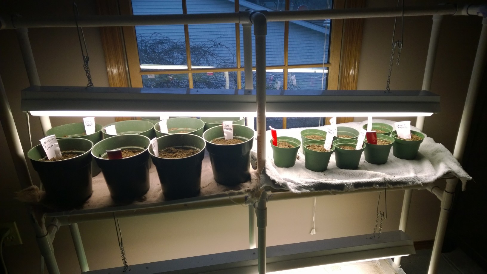 We also had to put our seedling stand elsewhere in the house. Year 1 we tried it in the basement. It was a wonderful learning experience and we learned that we won’t try to start seedlings in the basement again. Last year we put the seedlings in front of our slider which is on the west side of the house. They did awesome!!! This year it is in our bedroom by a south facing window. While I would rather have them by the slider again, they would be exposed to a dangerous condition in our home known as FS2 🙂 He is full of curiosity and I’m quite sure many of the seedlings would meet their untimely death as my little guy enjoyed playing in the dirt. So this year they will take up residence in our bedroom and I think they’ll do just fine there.