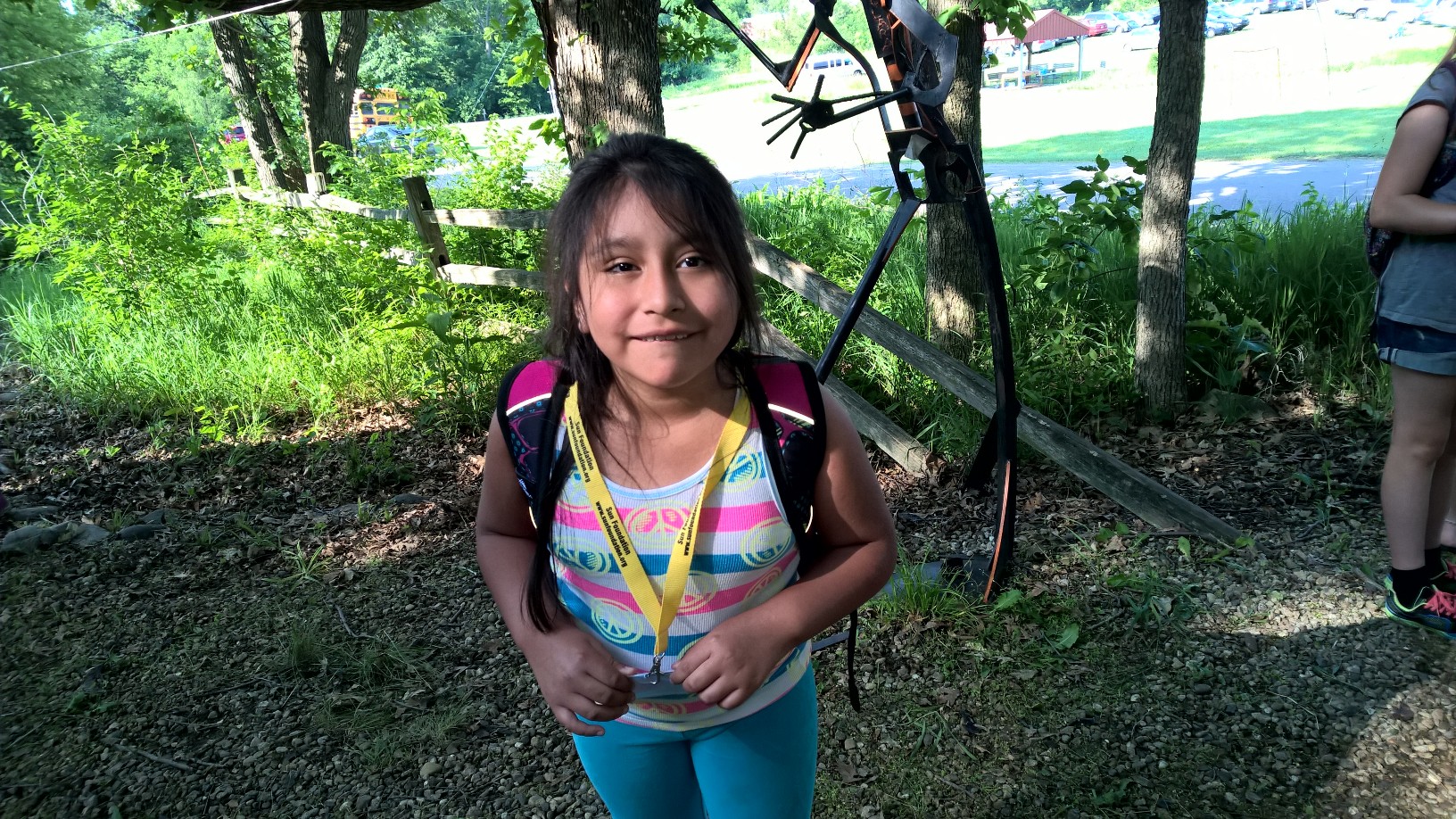 On the way home yesterday she told me about the turkey vulture they found as well as a Goldfinch and some other birds she couldn’t remember the name of. She was also thrilled to learn what poison ivy and sumac look like. She was able to try out some Native American instruments and made a teepee from sticks, a rubber band and some cloth she decorated.
