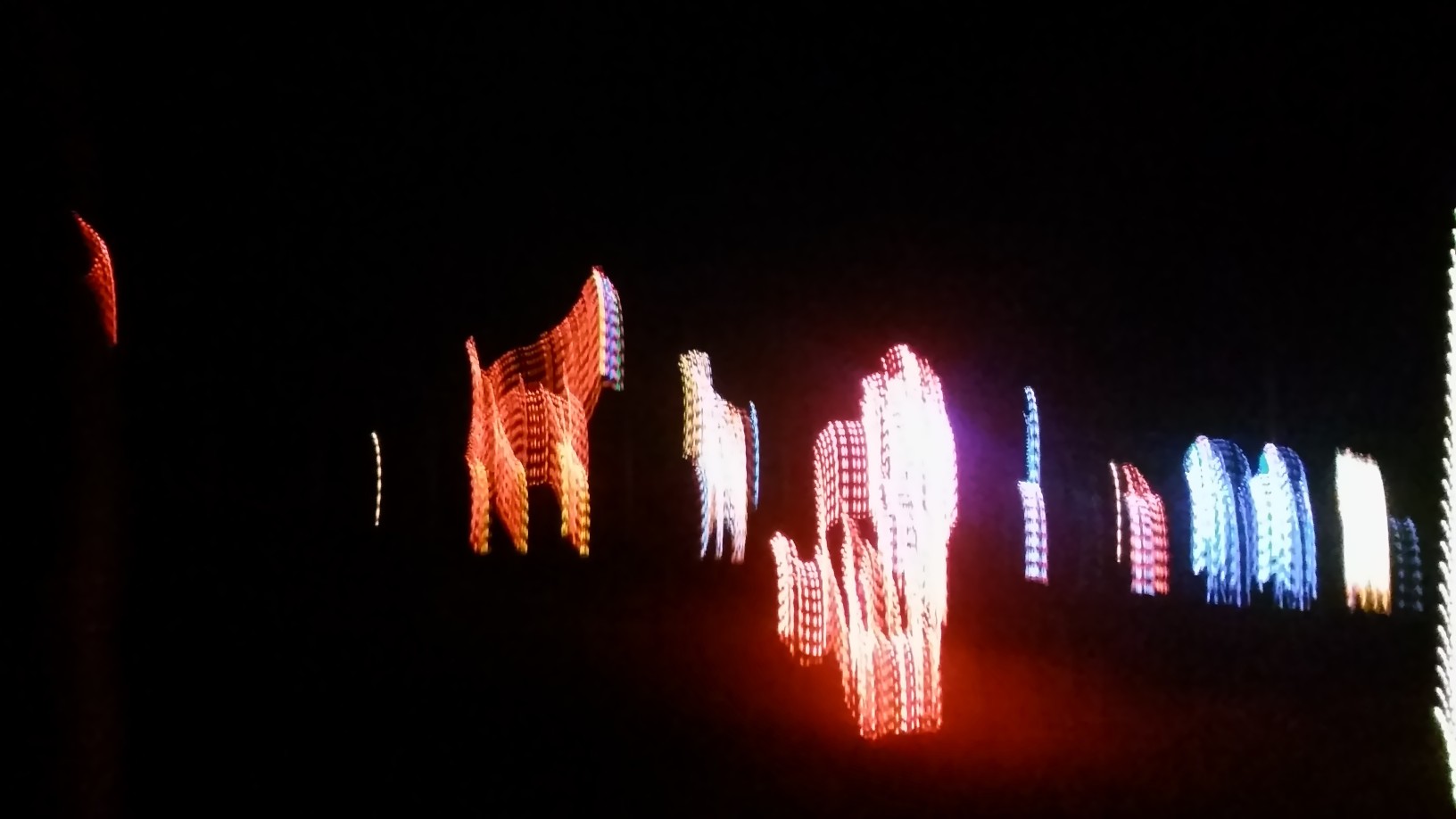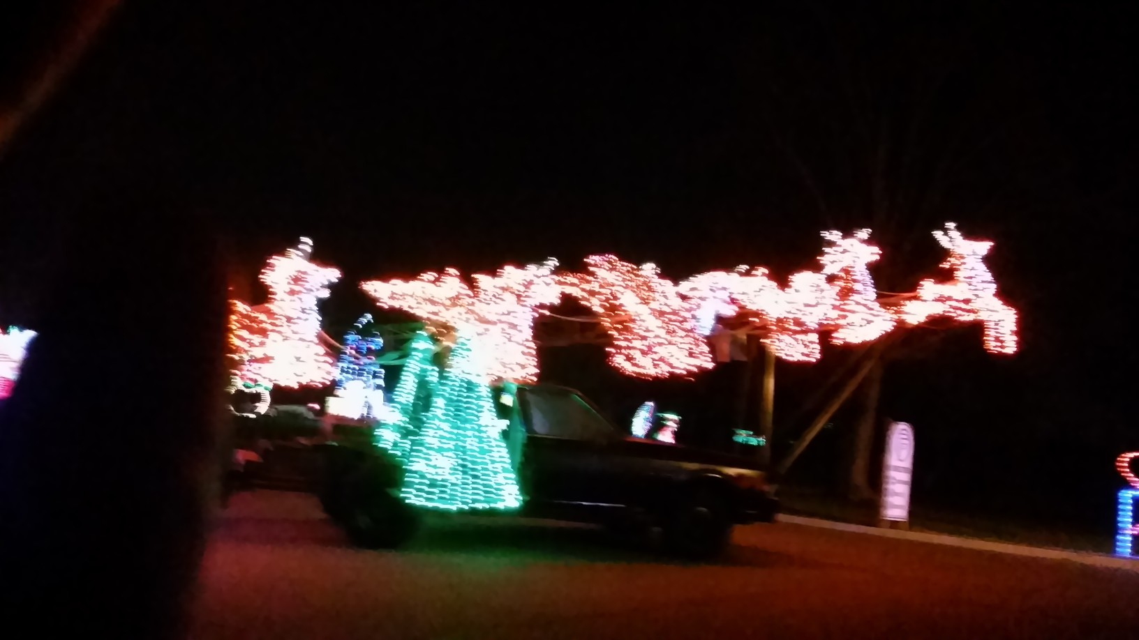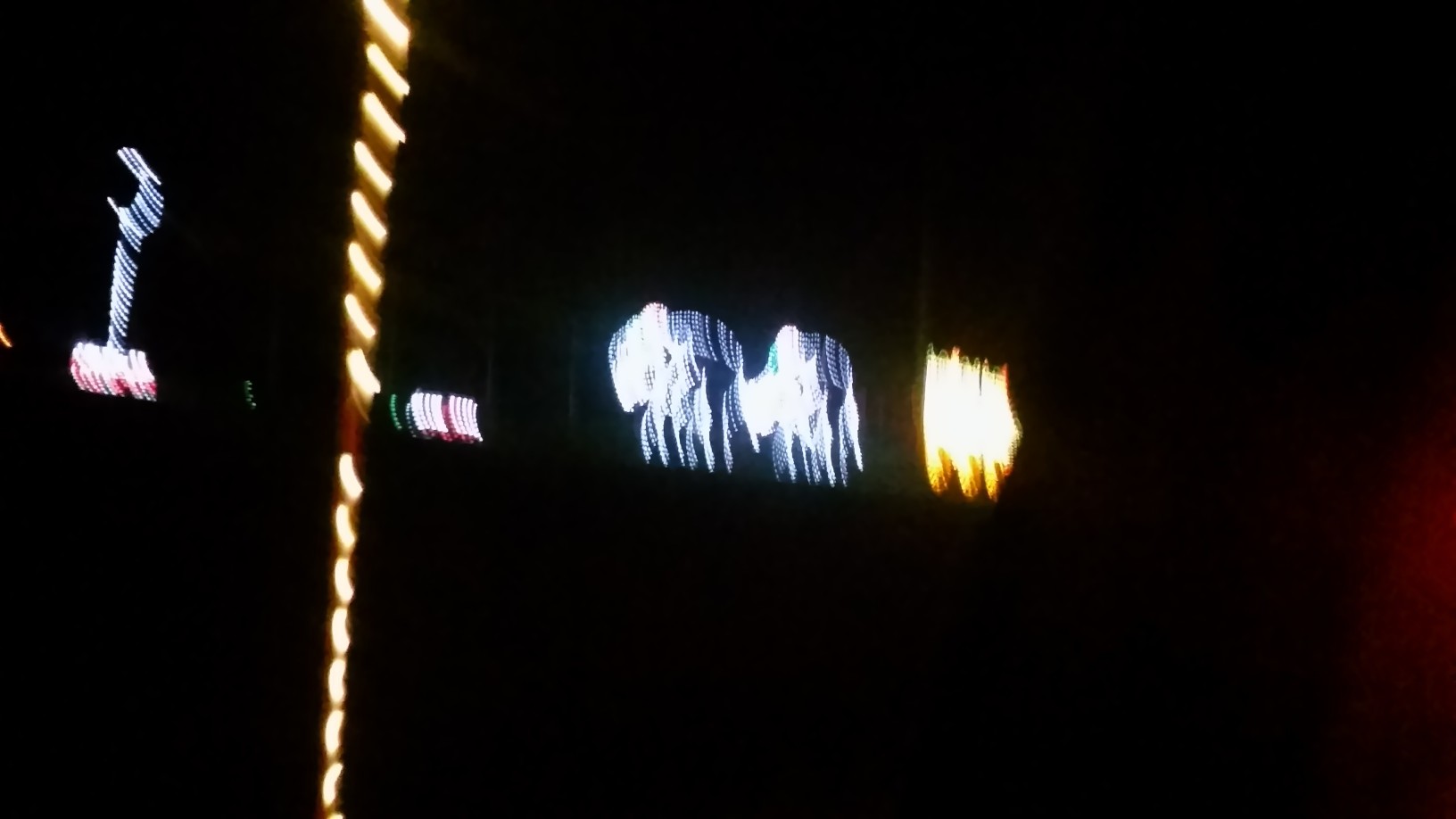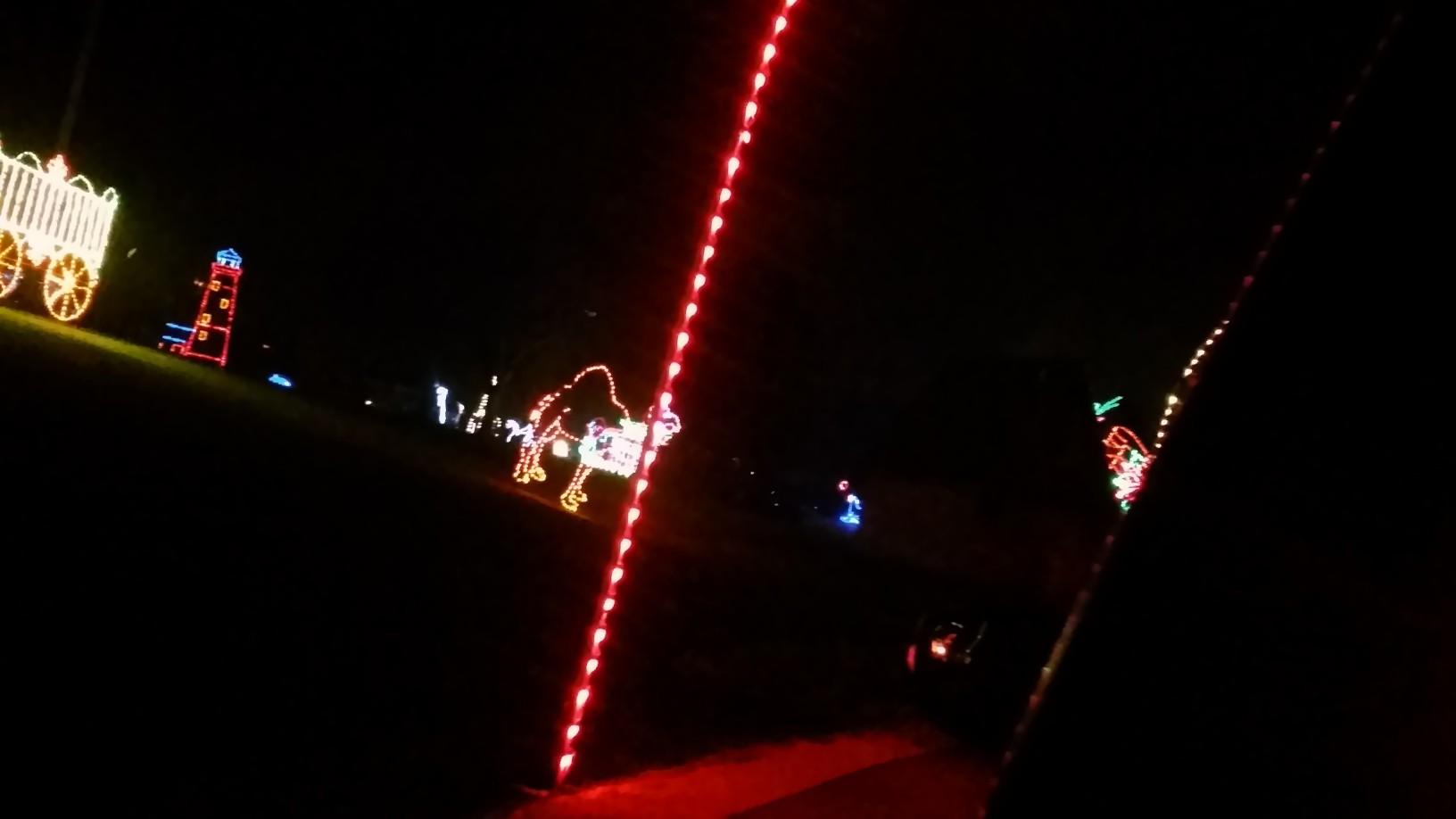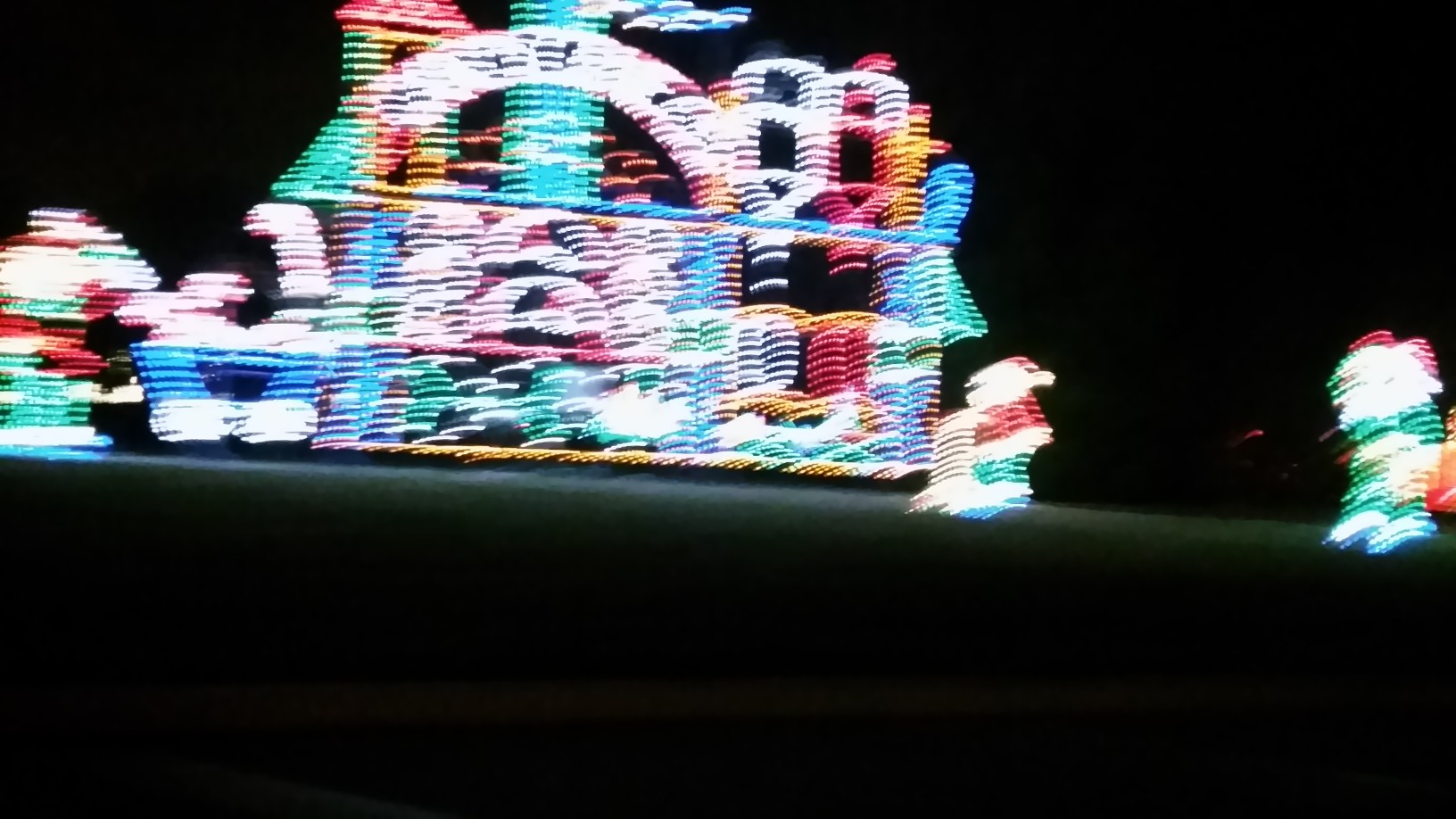 An annual holiday tradition in our family has been taking a trip to see the East Peoria Festival of Lights. However, Naomi was very conflicted about going this year. She enjoys seeing the lights, but not having daddy with us was very difficult for her. Still we made plans to go see the lights and I put her in charge of taking pictures. She was very happy about taking the pictures and since looking at them, I’m convinced she has created a new art form 🙂