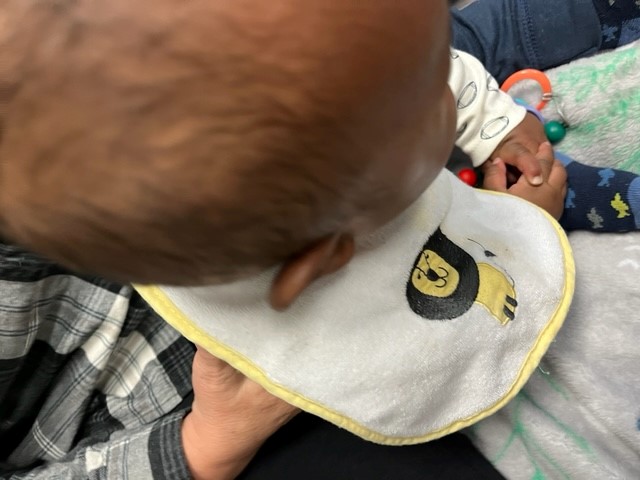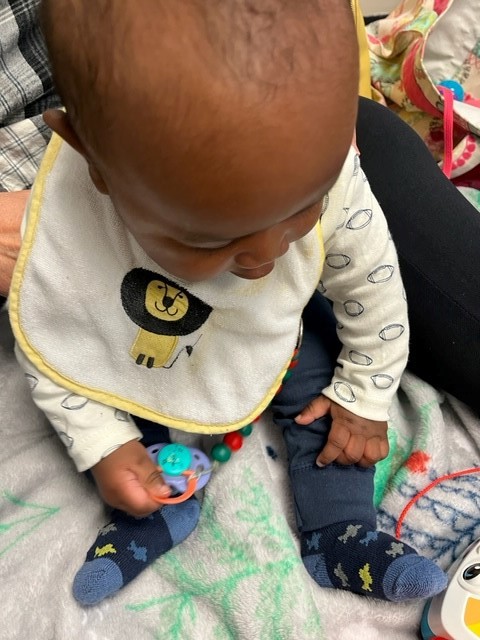 Arryn wanted to hold him, but only for short periods of time. He doesn’t sit still for long and wanted to push up to standing. Needless-to-say, that was a challenge for her so she was only interested in holding him for about a minute at a time.