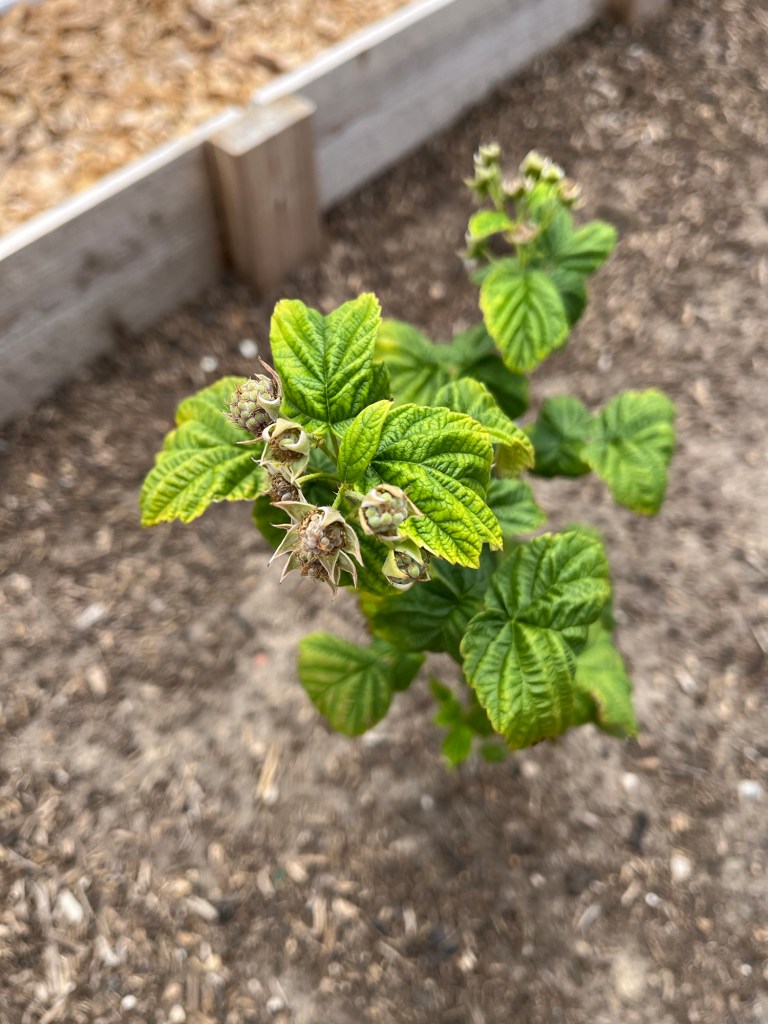 The raspberries already have little green berries on them which means I need to get them covered soon to avoid having the birds eat them.