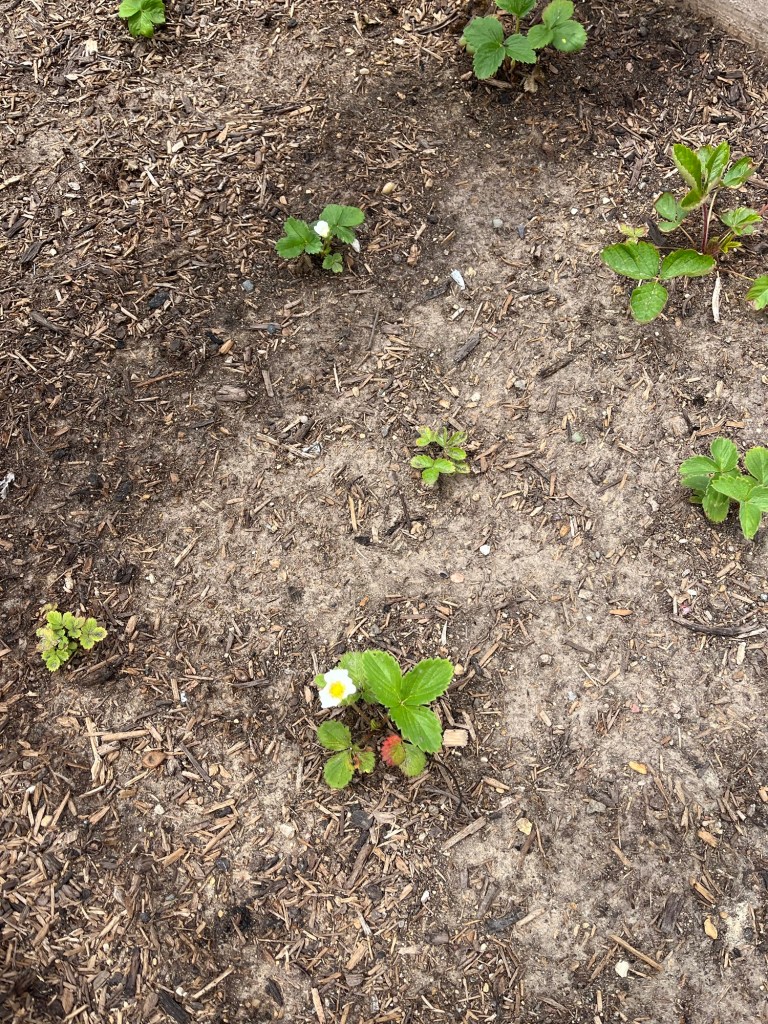 The strawberries are doing very well. We picked one tiny ripe strawberry a few days ago and it was yummy. Now I have a couple others that are blooming. Next year will be better and I am hopeful that in a couple years we’ll get a nice crop of strawberries to eat.