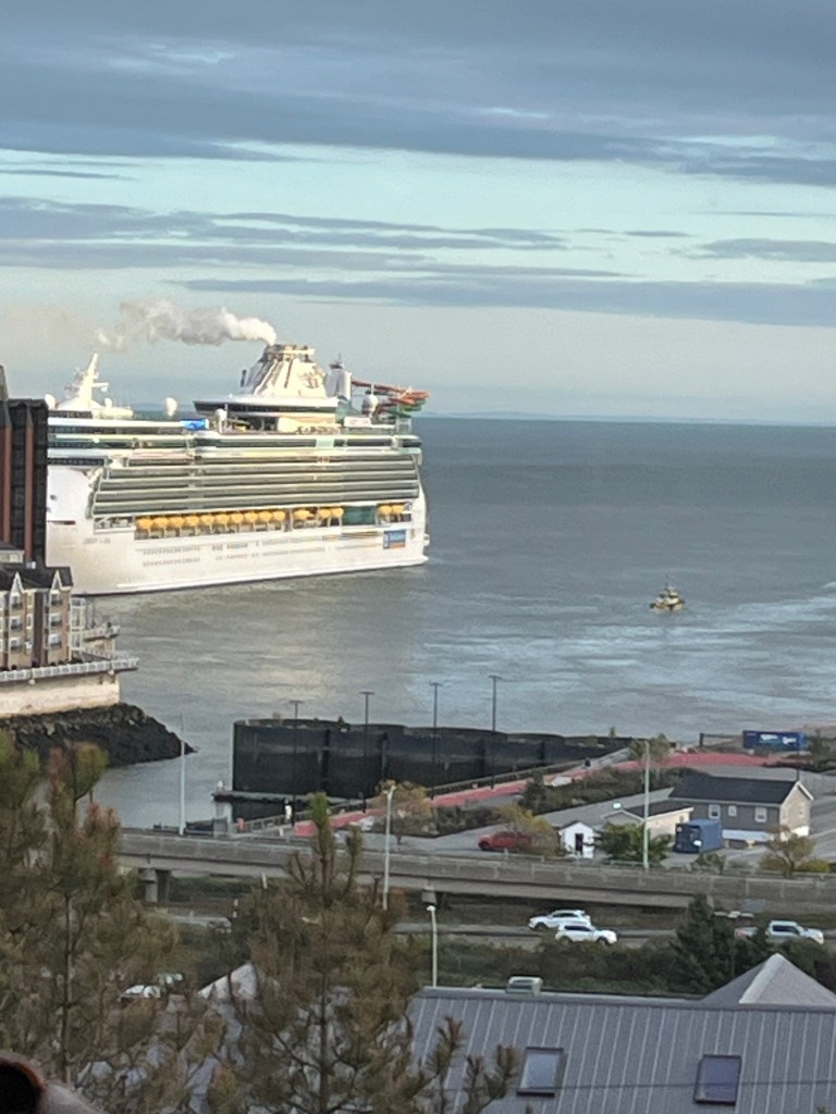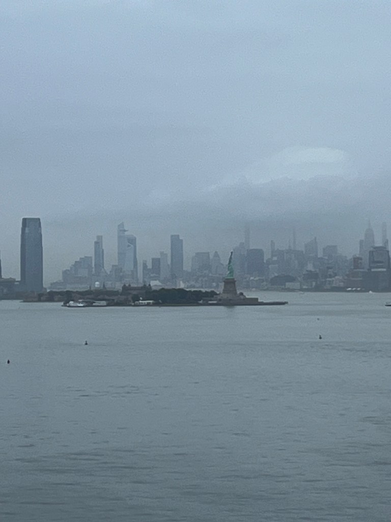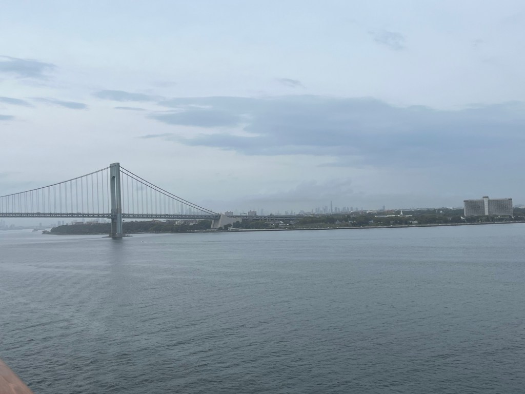 Our sail away was a bit windy and the skies were gray. It was overcast which meant getting a good photo as we passed the Statue of Liberty, was not going to happen. Going under the bridge was quite exciting. With only a few feet between the top of the ship and bottom of the bridge, the captain must maneuver the ship with precision, and it was clear this wasn’t a problem for him.