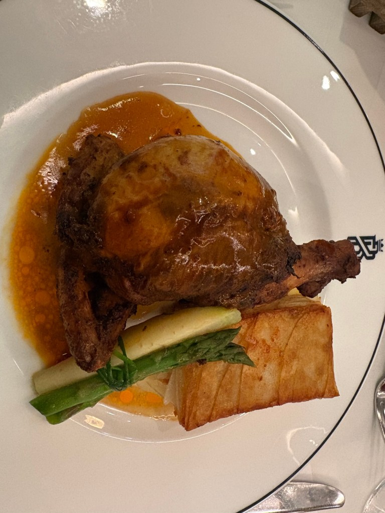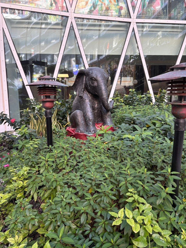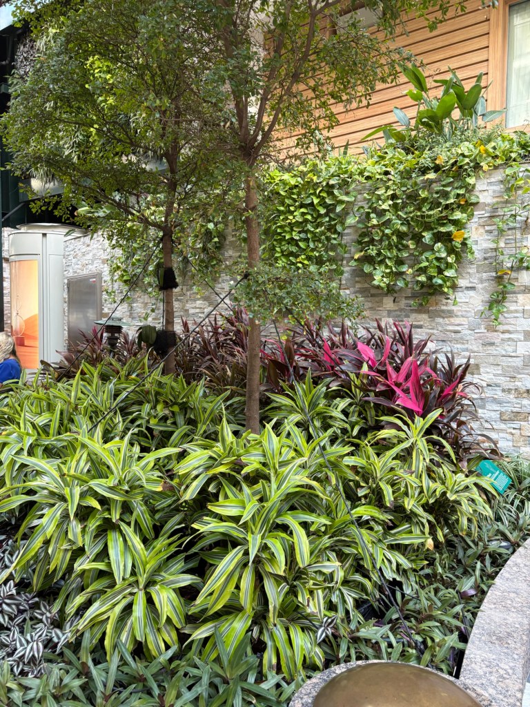 This was our 12th cruise, and in the past, we’d hit the Windjammer buffet like everyone else—along with four thousand, give or take a couple thousand other hungry humans. Finding a seat there is like playing musical chairs who seem oblivious to how the game is played. So lately, we’ve been skipping the chaos and opting for other spots. This time, we went to Park Café in Central Park. Yes, the ship has an actual Central Park with trees and plants. It’s like cruising meets nature documentary. Typically, there aren’t birds on the ships in Central Park, but this ship managed to get a stow away who seems very content to continue sailing.