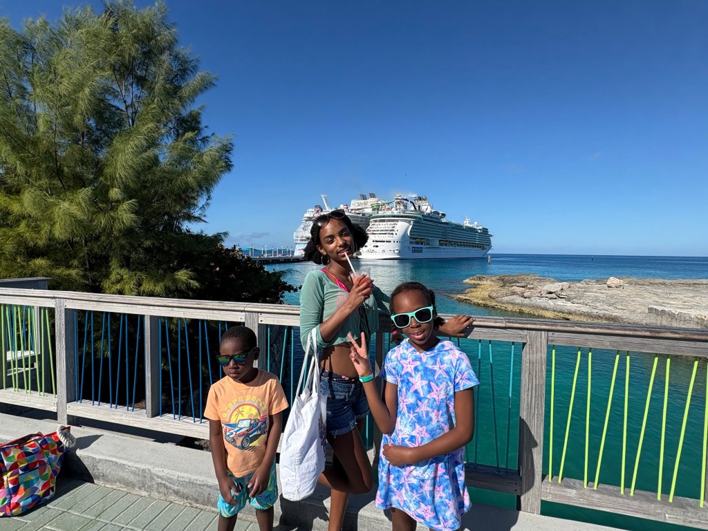 Arryn and Ezran loved the slides and went down them so many times I thought they were training for some Olympic slide event. After that, we hit the pool. And not just any pool—a zero-entry, massive pool that could probably fit half of Florida. Even with two ships docked, it wasn’t crowded. The water was in the 70s, which sounds warm until you actually get in and start questioning your life choices. But give it a few minutes under the Bahama sun, and suddenly you’re living your best tropical life.